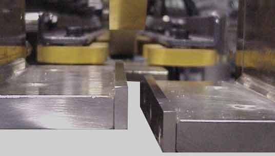Боковые направляющие ролики, установленные на параллельных напарвляющих, обеспечивают точное позиционирование заготовки на роликовом конвейере с базированием по ширине. На входе станка установлены обрезиненные ролики, а в непосредственной близости от рабочего узла - никелированные пластины из стали. Настройка роликов производится перемещением общей направляющей планки в пазах с отчетом размера по линейке, расположенной непосредственно под направляющими.