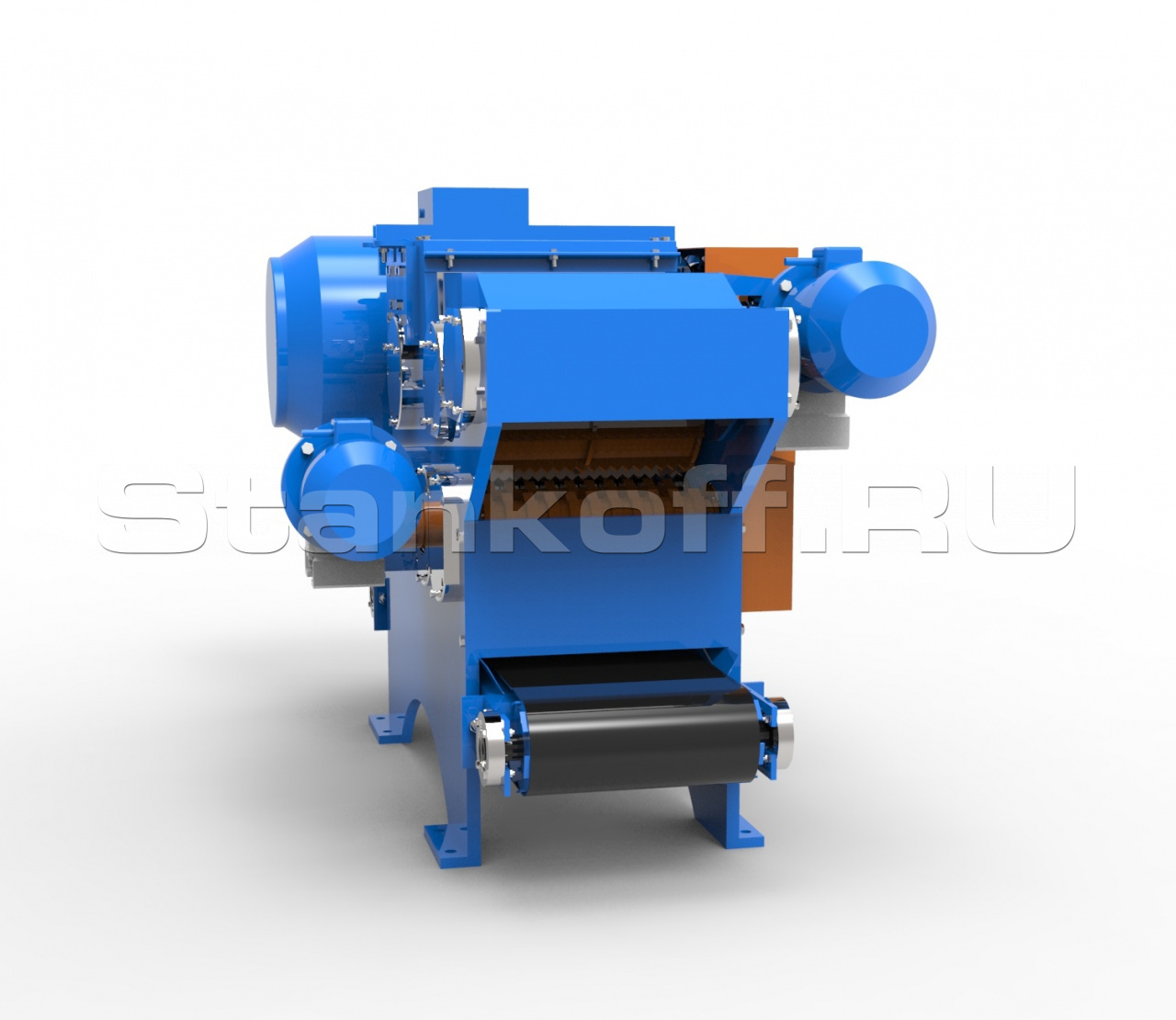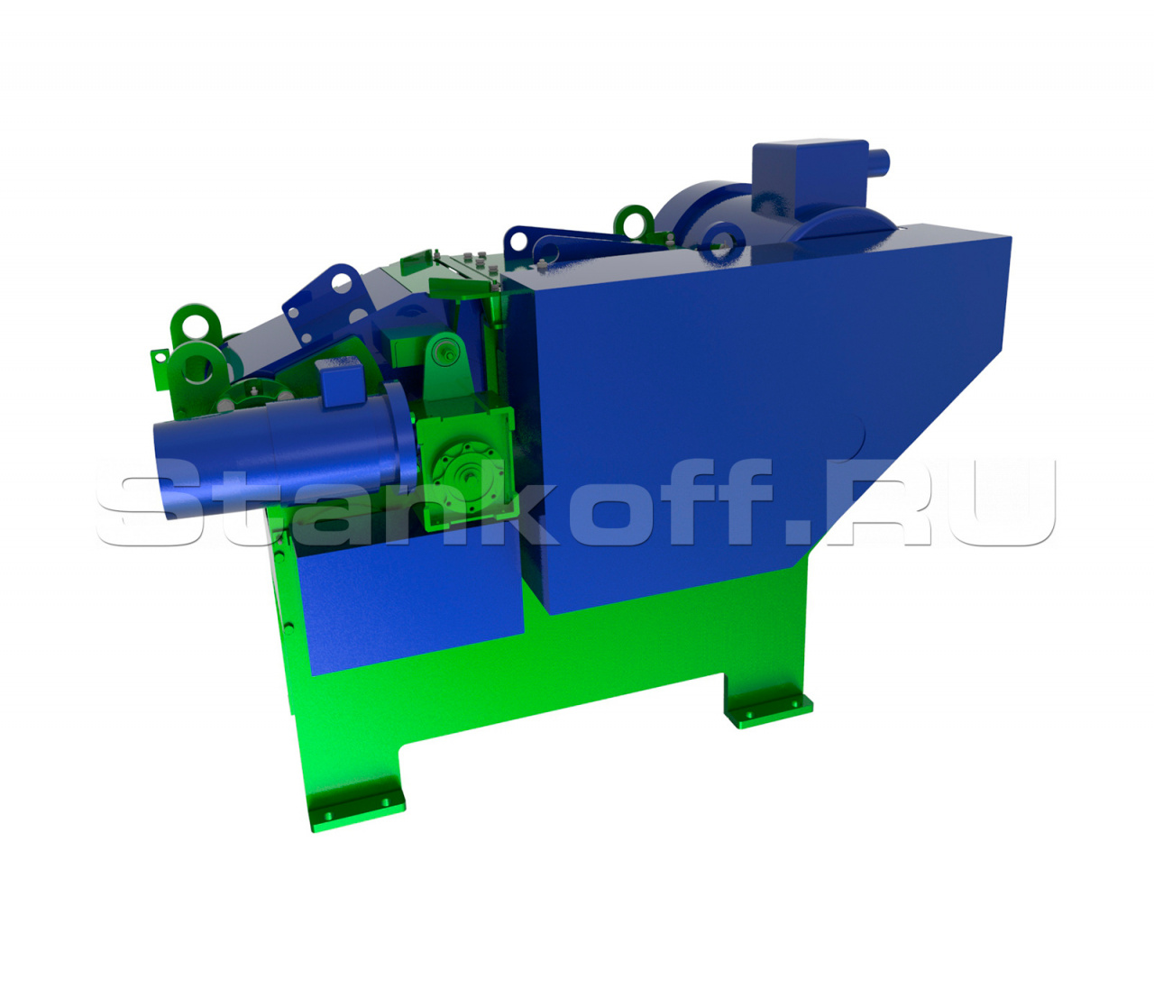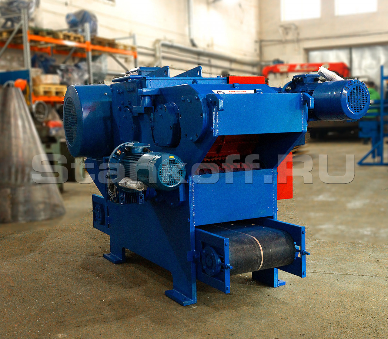 Барабанная рубительная машина - предназначена для промышленной утилизации кусковой древесины путем измельчения в щепу. Измельчитель оснащен прижимными зубчатыми валами, которые обеспечивают захват материала с целью дальнейшего перемещения в камеру дробления. Получаемая фракция щепы настраивается с помощью сито, скорости подачи транспортера и рябух в диапазоне от 10 до 60 мм.