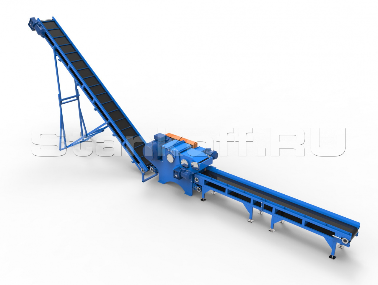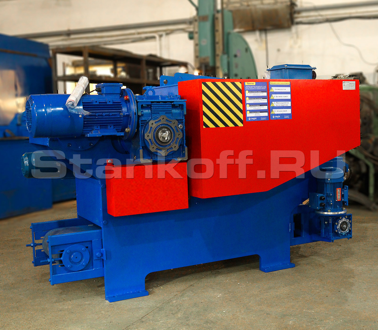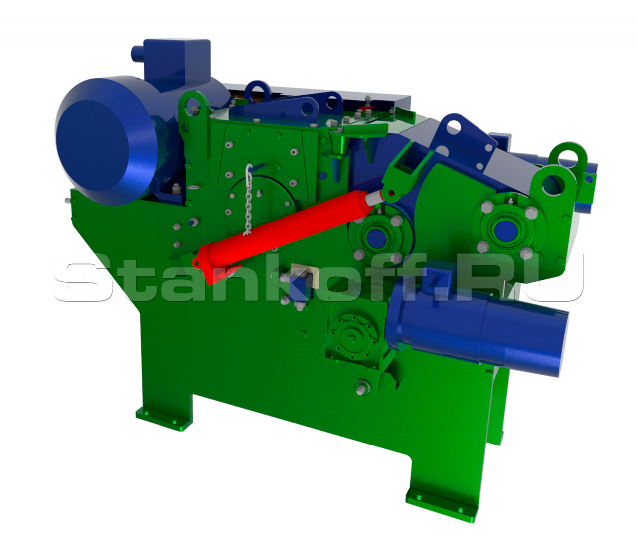 Барабанная рубительная машина - предназначена для промышленной утилизации кусковой древесины путем измельчения в щепу. Измельчитель оснащен прижимными зубчатыми валами, которые обеспечивают захват материала с целью дальнейшего перемещения в камеру дробления. Получаемая фракция щепы настраивается с помощью сито, скорости подачи транспортера и рябух в диапазоне от 10 до 60 мм.