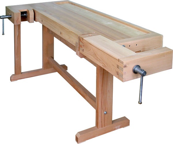 Выполнены в традиционном классическом стиле с использованием твердых пород древесины и оборудованы двумя подвижно-зажимными коробками с червячными металлическими винтами, подвижными клиньями для обработки длинных заготовок и лотком для заготовок и инструментов.