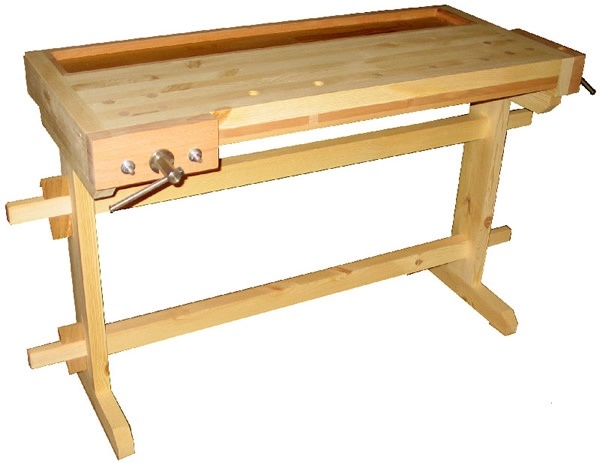 Базовая модель с подверстачьем состоит из двух опорных боковин с одной и двумя стойками и двух стяжных брусков (царг), расположенных один под другим.