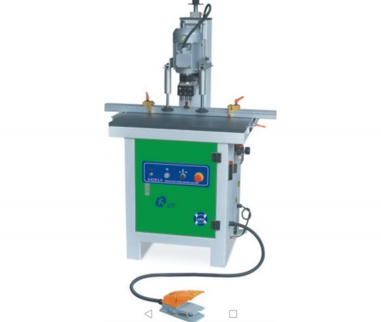 Управление сверлильными суппортами производится пневмопедалью. Расстояние между высверливаемыми петлями устанавливается вручную, посредством перемещения суппортов по направляющим с помощью ходовых винтов.