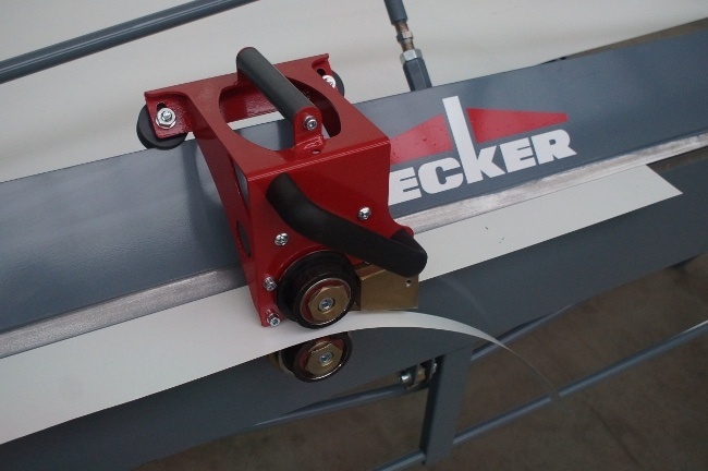 Идеально ровно режет металл с помощью специального ножа. Ровно, без заусенцев!!!