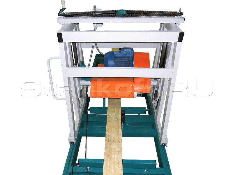 Данный станок позволяет работать с древесиной естественной влажности и обрабатывать заготовки шириной до 230 мм, высотой до 500 мм. Он прост и удобен в эксплуатации, мобилен (доставку к рабочему месту можно осуществить с помощью автомобиля «Газель»). Энергопотребление станка составляет всего 7,5 кВт. Станок обслуживают 2 человека. Опытные образцы данного станка работают на российском рынке более 5–ти лет.