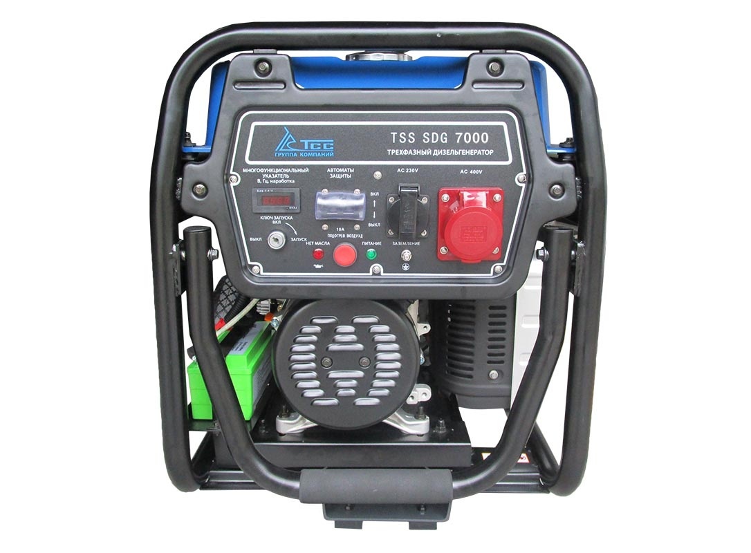 Трехфазный дизель генератор профессионального уговня, с максимальной мощностью 7 кВт, не только отлично справится с созданием резервного электропитания в случаях отключения электроэнергии, но и гарантирует стабильную работу в качестве главного источника питания, при условии необходимости подключения трехфазных 380В потребителей. Российский трехфазный дизельгенератор может применяться в автосервисе, строительстве, аварийными службами, а так же на предприятиях малого бизнеса, для подключения бытовых приборов или строительного инструмента. К примеру, в автосервисе можно подключить трехфазный компрессор для работы автоподъемников, в моменты отключения электроэнергии. Необходимо учитывать, что схема соединения "Звезда" используемая в трехфазном дизель генераторе ТСС, позволяет, при подключении нагрузки к однофазному разъему 220В, получить полезную снимаемую мощность всего 2.16 кВт. Электрогенератор дизельный 6.5 кВт работает на дизельном топливе(ДТ). Рекомендуемое к эксплуатации масло SAE 10W30.