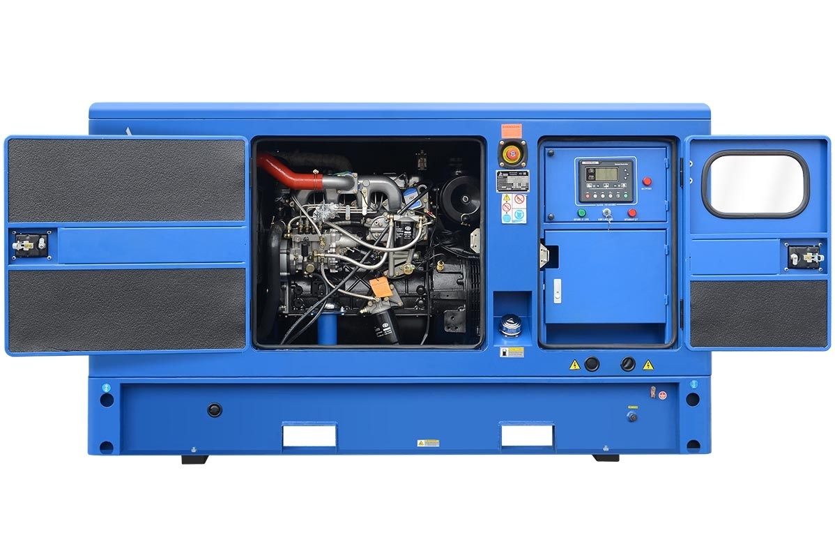 Дизель генераторную установку в шумопоглощающем кожухе можно эксплуатировать как в помещении, так и на улице при температуре окружающей среды от -25°С до +40°С. Кожух обеспечивает необходимую теплоизоляцию и снижает уровень шума на 10-12 дБ.