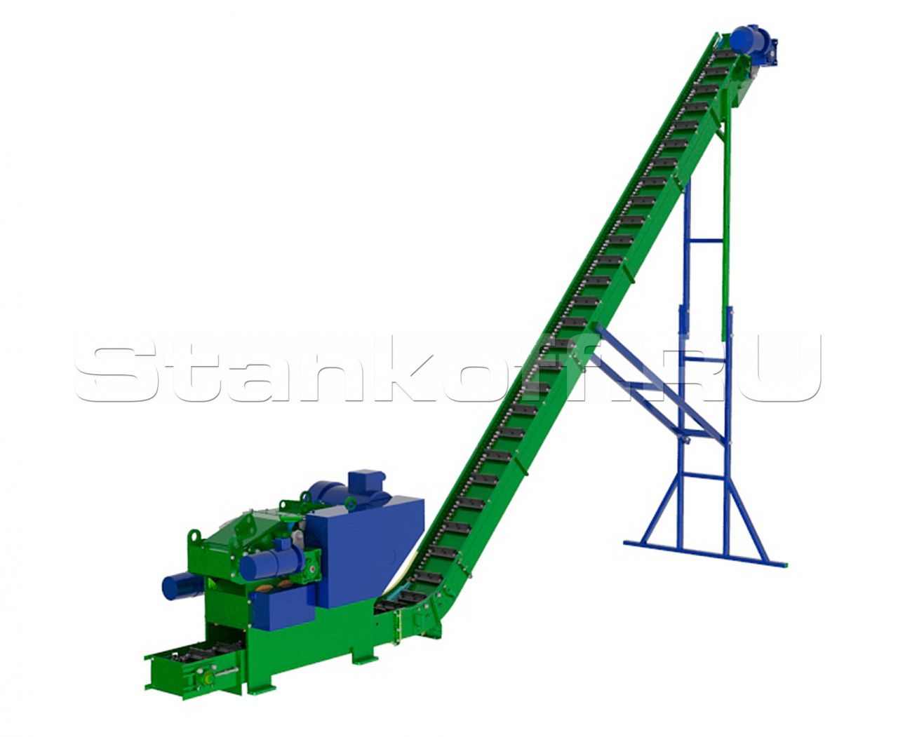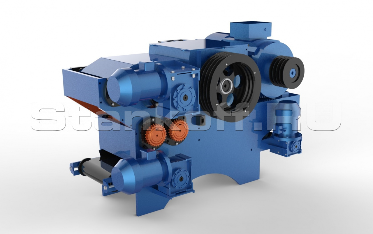 Барабанная рубительная машина - предназначена для промышленной утилизации кусковой древесины путем измельчения в щепу. Измельчитель оснащен прижимными зубчатыми валами, которые обеспечивают захват материала с целью дальнейшего перемещения в камеру дробления. Получаемая фракция щепы настраивается с помощью сито, скорости подачи транспортера и рябух в диапазоне от 10 до 60 мм.