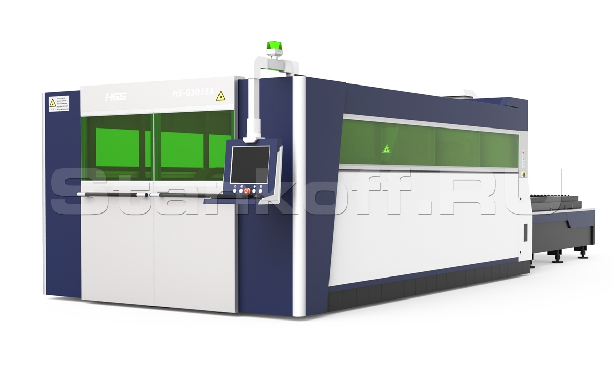 Профессиональные станки в закрытом исполнении для резки листовых металлов со сменными рабочими столами и рабочей зоной 3000х1500 мм. На лазерах можно установить лазерные источники мощностью 500 - 4000 Вт Raycus, IPG. Двусторонний привод оси Y, мощные сервоприводы и зубчатая передача шестерня-рейка позволяют осуществлять движение с максимальной скоростью 100 м/мин с ускорением 1.2G.