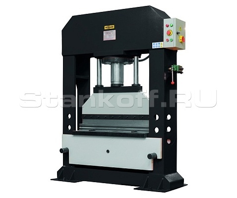 Одноцилиндровый листогибочный гидравлический пресс Stalex HPB-1500 предназначен для работы в мастерских и на единичных и серийных производствах. Стальная надёжная конструкция гарантирует необходимую жесткость и устойчивость станка при ежедневном использовании. Рабочий стол можно перемещать вверх и вниз, что значительно увеличивает рабочую высоту оборудования и облегчает работу. Подъем может происходит с помощью цепи через главный цилиндр. Контроль давления в надежной и высокоточной гидравлической системе осуществляется по манометру. Удобное управление станком позволяет изменять длину хода поршня цилиндра. Станок комплектуется V-образной матрицей и пуансоном.