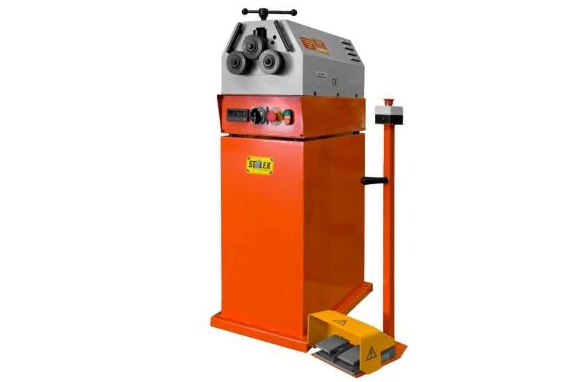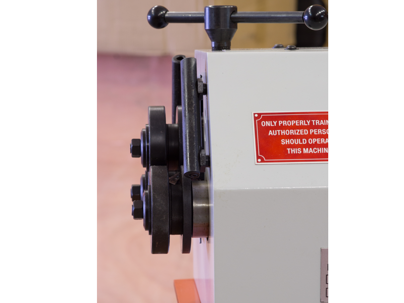 Станок управляется двумя ножными педалями, кнопкой аварийной остановки. На стойке размещена рукоять для переноса. В стандартной комплектации станка установлен цифровой дисплей (индикатор повторяемости) для верхнего гибочного ролика.