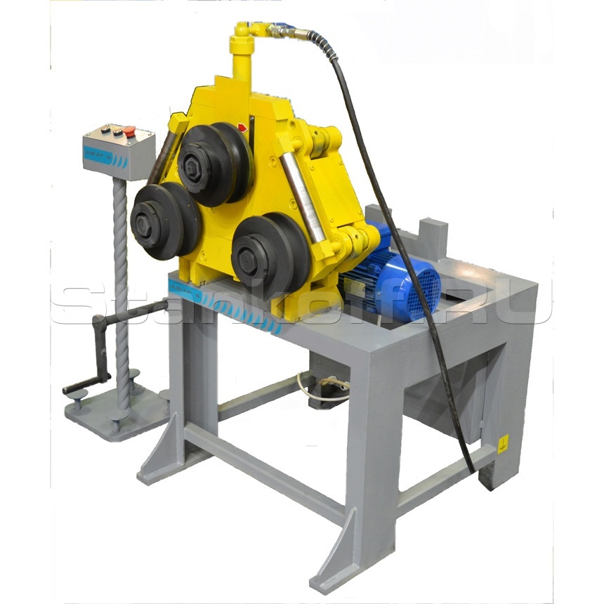 Предназначена для выполнения радиусной гибки стального проката и профиля из конструкционных сталей общего назначения. Работает в двухплоскостном режиме: вертикальном и горизонтальном. Может быть двух видов: Ажур-6 - машина электромеханическая; Ажур-6М - машина электрогидравлическая. Работает с заготовками следующих размеров: - полосы шириной до 60 мм и толщиной до 20 мм; - квадрата до 40 мм; - трубы профильной до 60х60 мм; - трубы водогазопроводной до dy 65( 76мм); - швеллера до №12; - уголка до 63х63 мм.