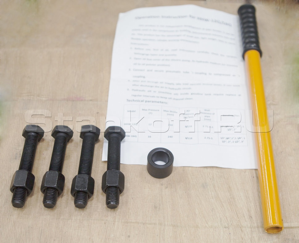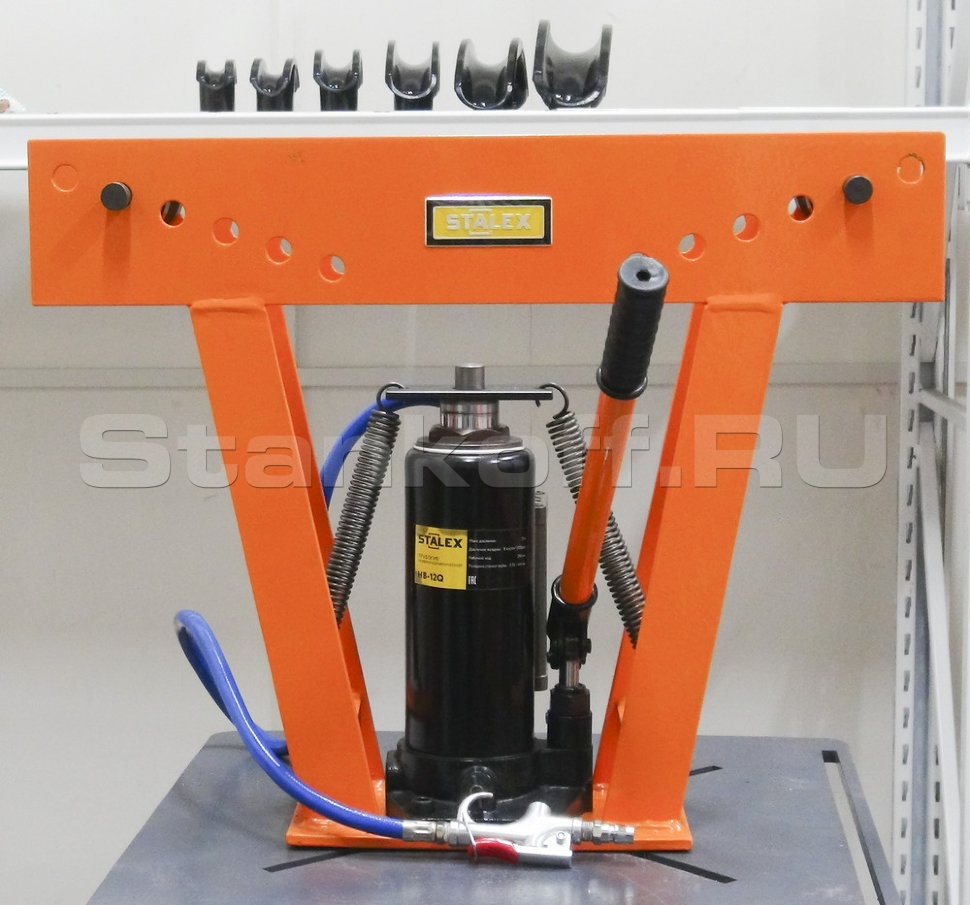 Широко применяется в сфере строительных и ремонтных работ. Прокладка газо- и водопроводов, производство всевозможных ограждений, каркасных конструкций. Совмещает в себе лучшие характеристики двух типов: Модель HB-12Q продавливает заготовки при помощи гидравлической направляющей, работая в двух независимых друг от друга режимах (ручной и пневматический), с набором сменных рабочих оправ. Помимо шести рабочих опор станок имеет две горизонтальные опоры, устанавливаемые в отверстия для регулировки радиуса гиба.