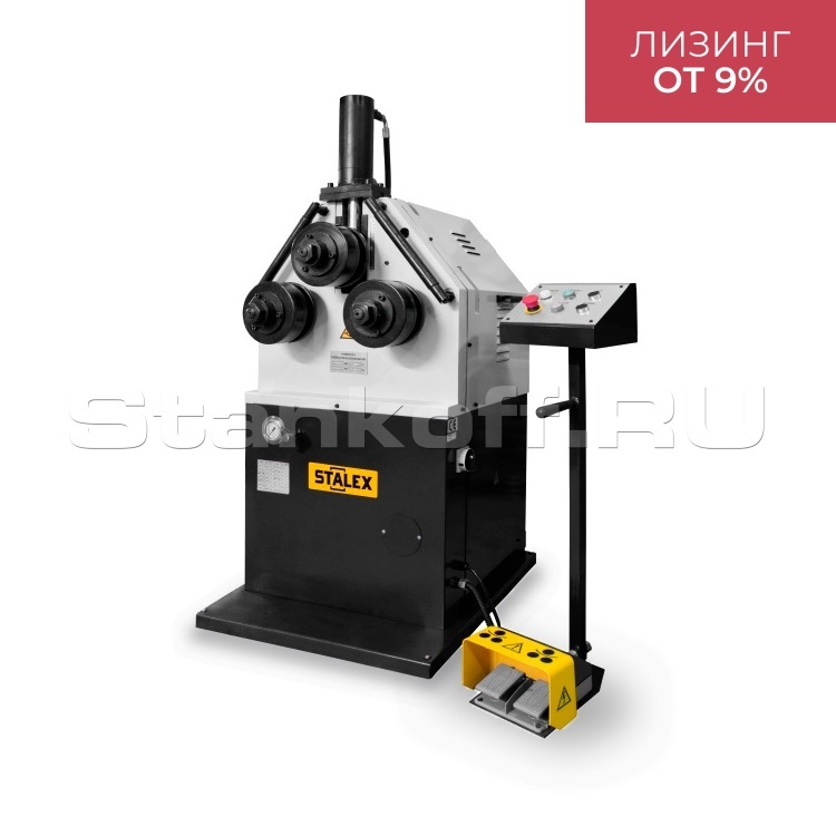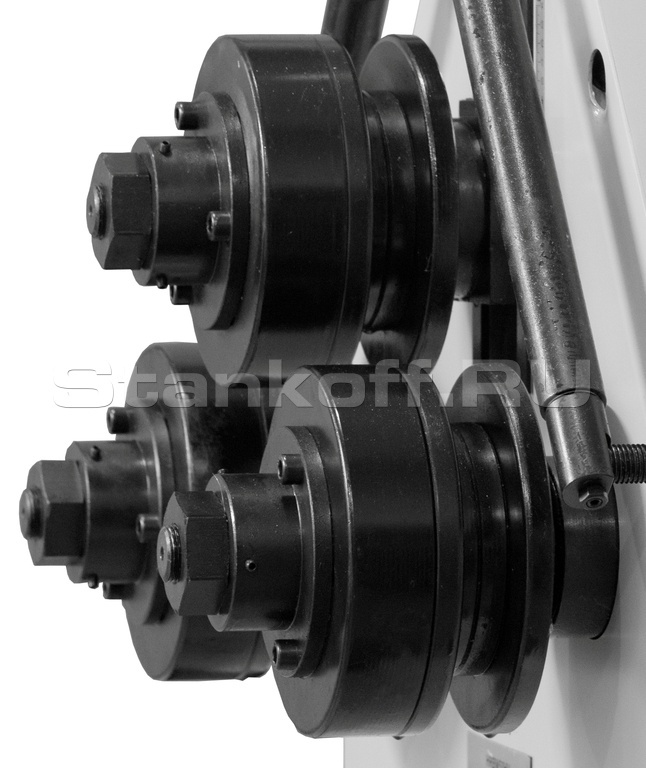 Мощный гидравлический трубогиб для гибки профильных труб, полосы, прутка. Крепкая устойчивая конструкция для длительного срока службы с 2-мя приводными нижними роликами и гидравлический привод верхнего вала. Простое управление, удобен в работе.
