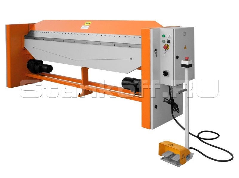 Конструкция станка имеет вертикальный ход прижимной балки (благодаря вертикальным салазкам в конструкции станка), что позволяет фиксировать заготовки с строго параллельными поверхностями и более сильным прижимом по всей длине станка, в сравнении с обычными осевыми прижимами. Наличие переносного пульта управления с двумя педалями и кнопкой аварийного останова, значительно упрощает работу оператора, что в свою очередь позволяет быстро выполнять поворот и перемещение заготовок. В конструкции станка предусмотрена регулировка высоты гибочной балки, а так же компенсатор прогиба гибочной балки. Высота просвета верхней прижимной балки без сегмента в прижатом состоянии – 51 мм.