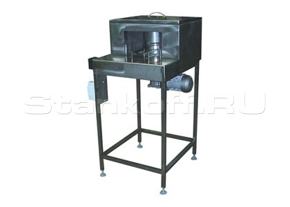 Предназначена для мойки, ополаскивания и стерилизации пустых стеклянных банок цилиндрической формы с наружным диаметром от 70 до 155 мм и высотой от 100 до 235 мм. Принцип работы установки следующий: банка ставится горловиной вниз на столешницу, затем подается рукой до упора на вращающийся диск, перемещающий её в зону мойки, где банка омывается снаружи и внутри горячей водой. Ведомая вращающимся диском, банка поступает затем в зону стерилизации, где она подвергается обработке паром и затем выводится по направляющим обратно на столешницу.