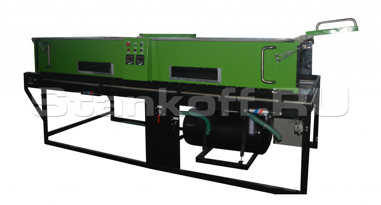 Станок комплектуется низко инерционными галогеновыми лампами мощностью 1000Вт. Общий уровень энергопотребления термомодуля 24 кВт. Перемещение термомодуля по прижимной рамке осуществляется вручную на специальных стальных роликах.