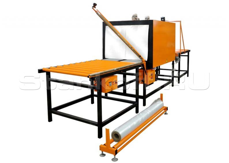 Термоупаковочная машина ТМ-7Р М2 (ручная) предназначена для упаковки длинномерных изделий, к числу которых относятся различного вида пиломатериалы: доска, двери, короба, и т.п. в термоусадочную полиэтиленовую пленку.