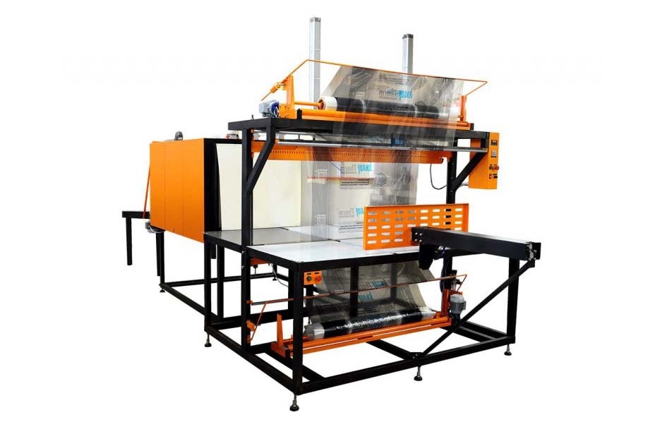 Термоупаковочная машина ТМ-1П М2 предназначена для упаковки утеплителя, коробов больших размеров, пенопласта, бухт кабелей в термоусадочную полиэтиленовую пленку. Состав машины: ТМ-1П термотоннель, ТМ-1П термонож полуавтоматический, приемный рольганг с системой охлаждения готовой продукции