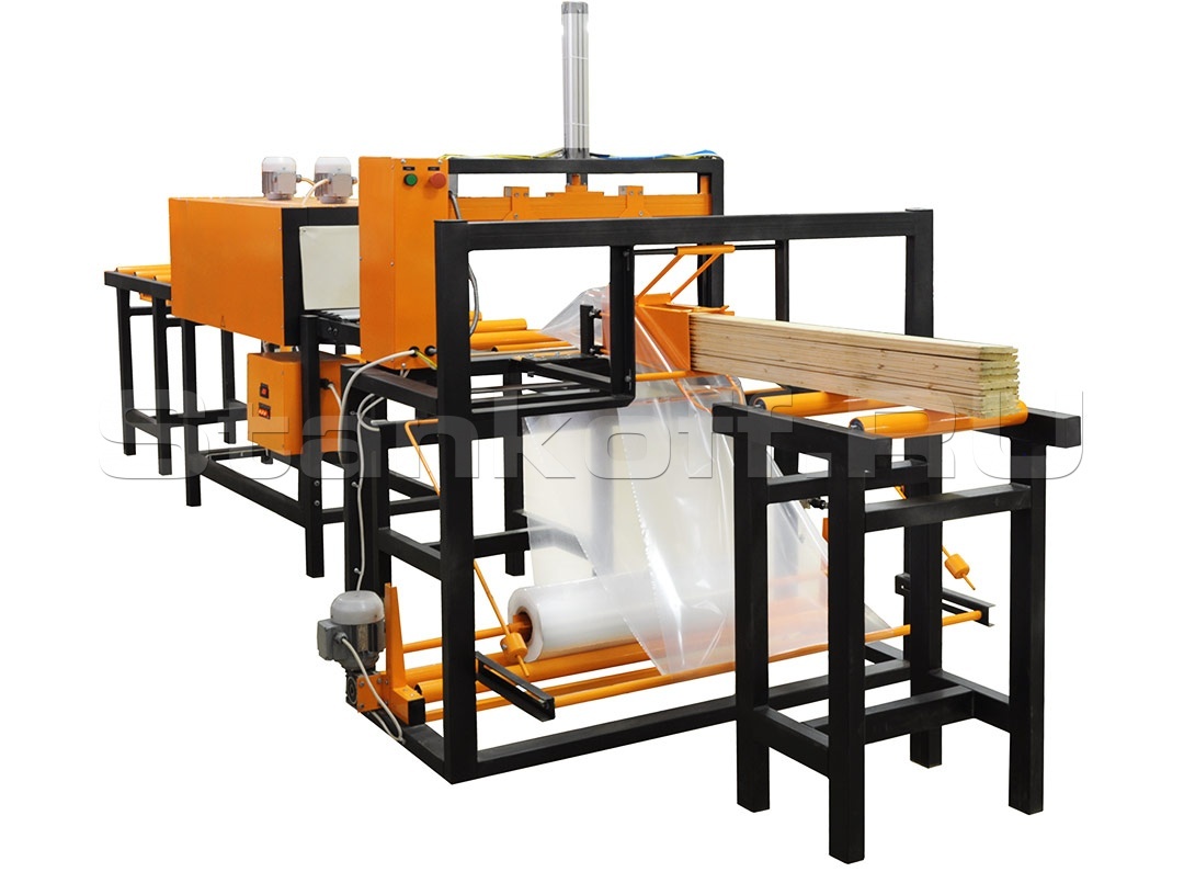 Термоупаковочная машина ТМ-5П предназначена для штучной и групповой упаковки длинномеров: вагонки, бруса, плинтусов, досок, карнизов и т.п.