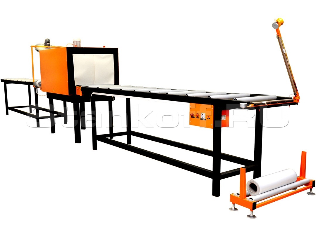 Термоупаковочная машина ТМ-7Р (ручная) предназначена для упаковки длиномерных изделий таких как доска, вагонка, брус и т.д. в термоусадочную полиэтиленовую пленку.