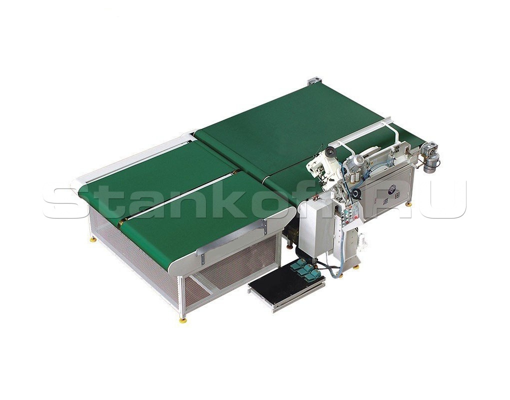 Полуавтоматическая машина WB-4 на базе рукавной машины цепного стежка SINGER 300U предназначена для окантовки края матраса различной толщины в автоматическом режиме. В конструкции машины шьющая голова зафиксирована. Продвижение матраса выполняется на конвеерной ленте. Требуется подключение к компрессору.