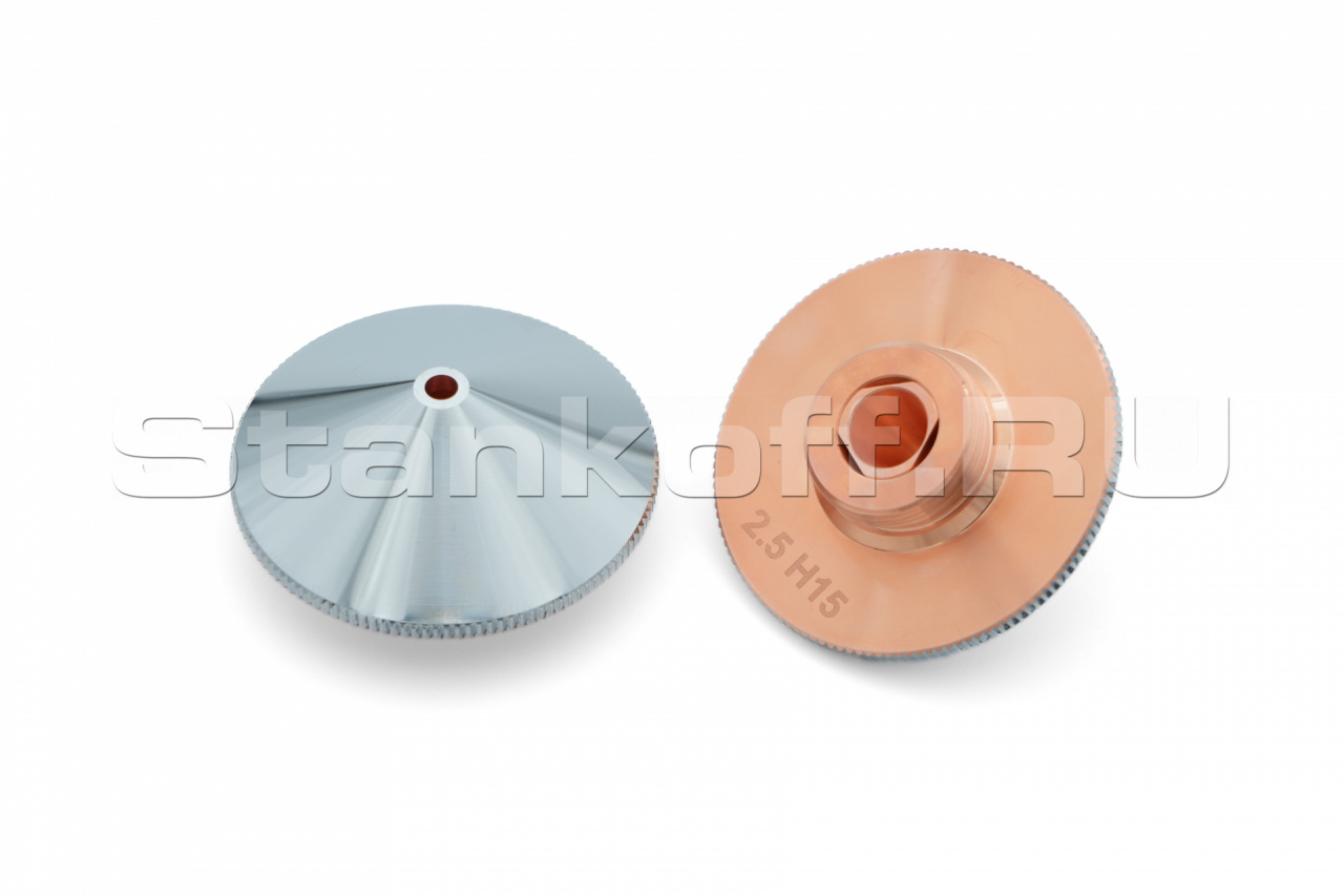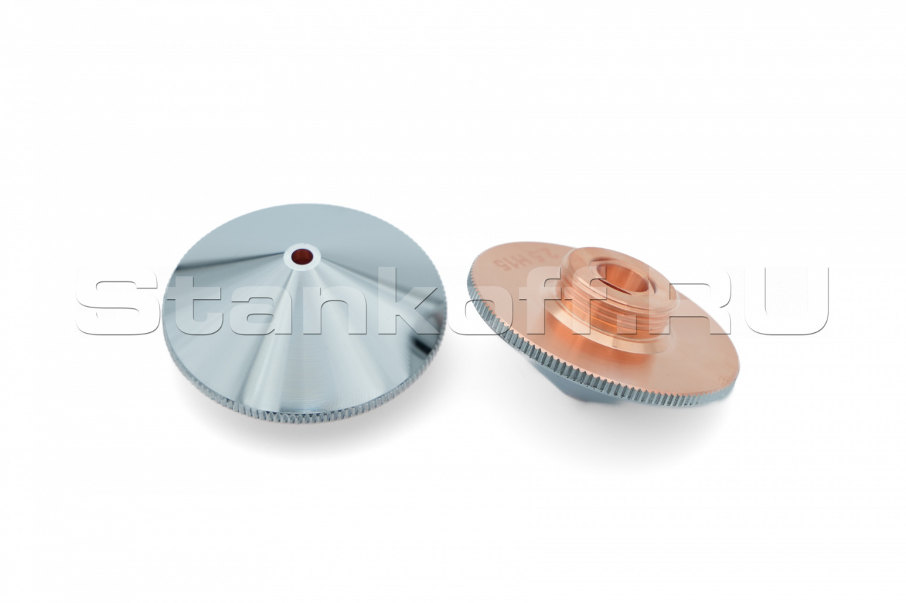 Используется в качестве электрода для корректной работы датчика слежения за поверхностью, а также для подачи лазерного излучения и режущего газа (опционально) в зону обработки. Срок службы зависит от условий эксплуатации. Все сопла Raytools характеризуются прочностью и надежностью. Сопловая часть лазерной головки состоит из керамического держателя и непосредственно сопла. Эта часть обеспечивает соосность лазерного излучения и струи газа. Электролитическое хромирование максимизирует срок эксплуатации, сокращает адгезию при разбрызгивании и обеспечивает стабильное определение высоты. Во всех соплах используется функция центровки, которая позволяет быстро изменять и выравнивать положение сопла. Двойные сопла улучшают качество поверхности при кислородной резке низкоуглеродистой стали. Для полного охвата диапазона толщины сопла имеют диаметр в диапазоне от 0,8 мм до 10 мм.