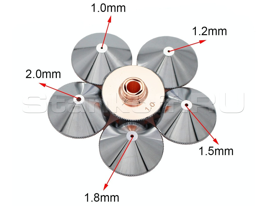 Используется в качестве электрода для корректной работы датчика слежения за поверхностью, а также для подачи лазерного излучения и режущего газа (опционально) в зону обработки. Срок службы зависит от условий эксплуатации. Все сопла Worthing характеризуются прочностью и надежностью. Сопловая часть лазерной головки состоит из керамического держателя и непосредственно сопла. Эта часть обеспечивает соосность лазерного излучения и струи газа. Во всех соплах используется функция центровки, которая позволяет быстро изменять и выравнивать положение сопла.