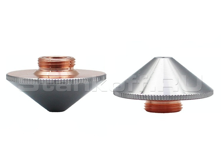 Используется в качестве электрода для корректной работы датчика слежения за поверхностью, а также для подачи лазерного излучения и режущего газа (опционально) в зону обработки. Срок службы зависит от условий эксплуатации. Все сопла Worthing характеризуются прочностью и надежностью. Сопловая часть лазерной головки состоит из керамического держателя и непосредственно сопла. Эта часть обеспечивает соосность лазерного излучения и струи газа. Во всех соплах используется функция центровки, которая позволяет быстро изменять и выравнивать положение сопла.