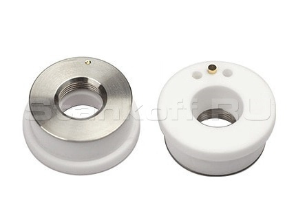 Керамическая проставка для оптической головы Worthing WSX. Является держателем сопла. Выполняет изоляционные функции, препятствует нагреванию нижних частей лазерной головки. Резьба на проставке соответствует резьбе на сопле. Используется для лазерной резки металла. Срок службы керамического кольца зависит от условий его эксплуатации. Керамическая проставка D28 мм совместима с оборудованием производителей, где используется данный типоразмер.