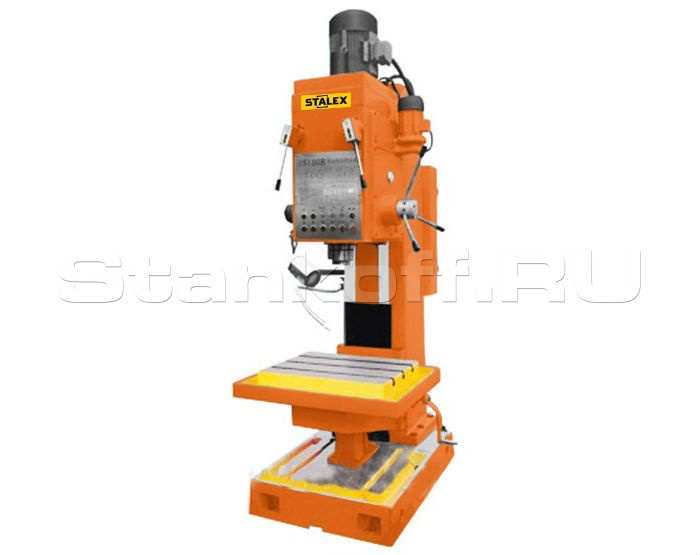 Тяжелый промышленный сверлильный станок с коробчатой колонной предназначен для выполнения операций сверления, развёртки, зенкования, а также нарезания внутренних резьб, цекования и т.д. Станок оснащен системой подачи СОЖ в зону резания. На станке предусмотрена функция автоматического сверления глубоких отверстий со ступенчатой подачей и регулировкой глубины сверления.