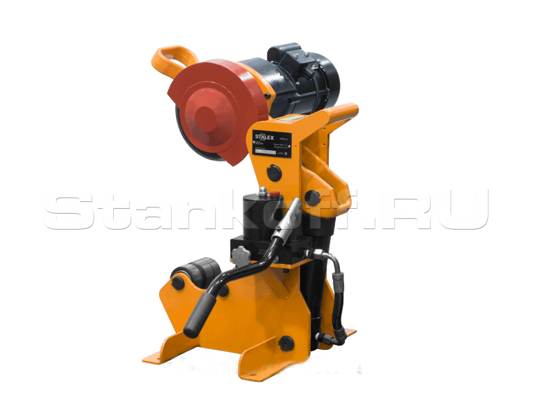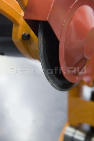 Подвод режущего диска к трубе осуществляется при помощи поворотного рычага. Поворотный рычаг подает режущий диск при помощи гидравлического цилиндра и ручного насоса, при этом оператор контролирует скорость подачи диска подкачивая гидравлический ручной насос во время работы.