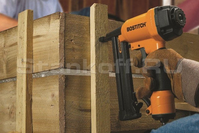 Скобозабивной каркасный пневматический инструмент для скоб среднего сечения. Простой неприхотливый инструмент для промышленного применения на мебельных и столярных производствах.