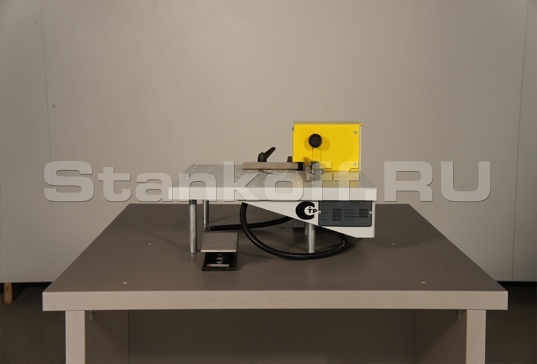Основной характеристикой устройства является его простота и точность, а также возможность обработки с углом. Устройство, возможно, использовать как самостоятельную единицу, установив его на любую плоскую поверхность, так и прикрепив его на станину кромкооблицовочного станка или на станину фрезерного станка для снятия свесов кромочного материала по пласти. Обработка производится фрезерованием дисковой фрезой. Рабочий цикл осуществляется нажатием управляющей педали.