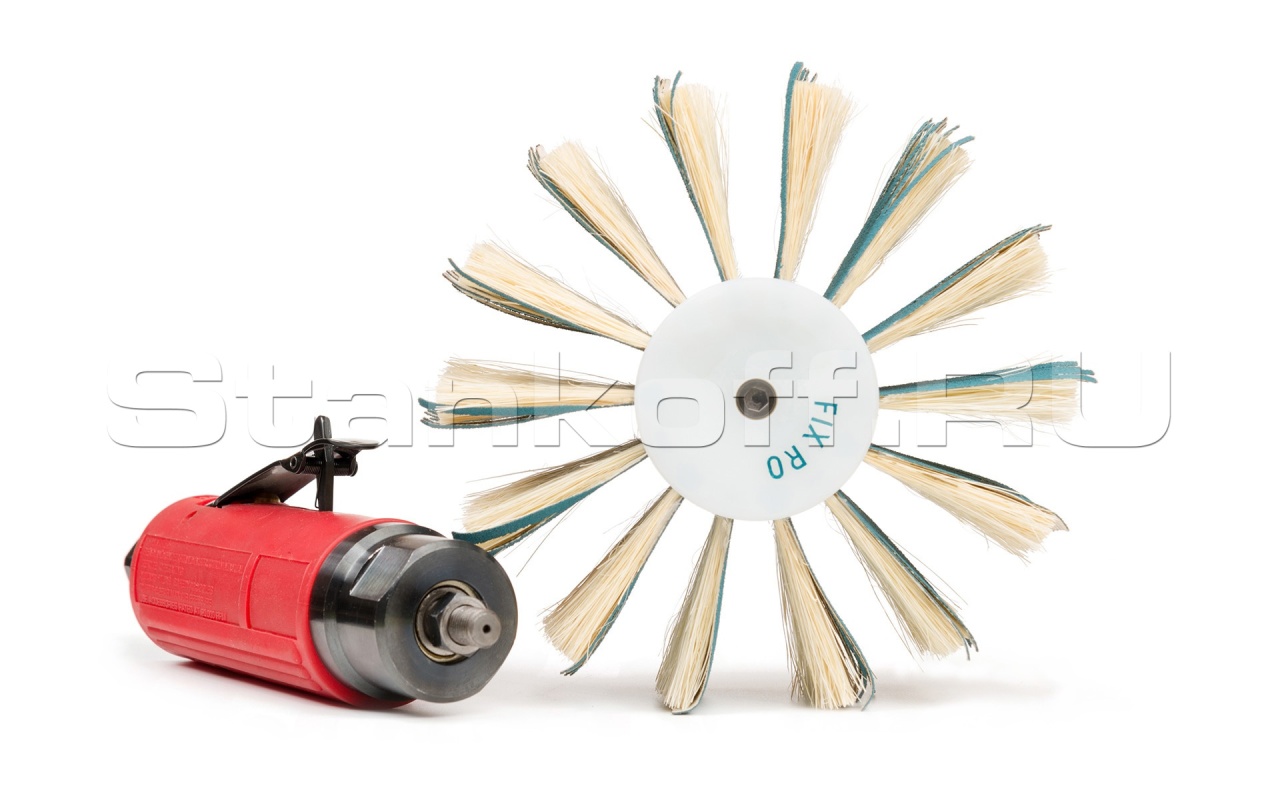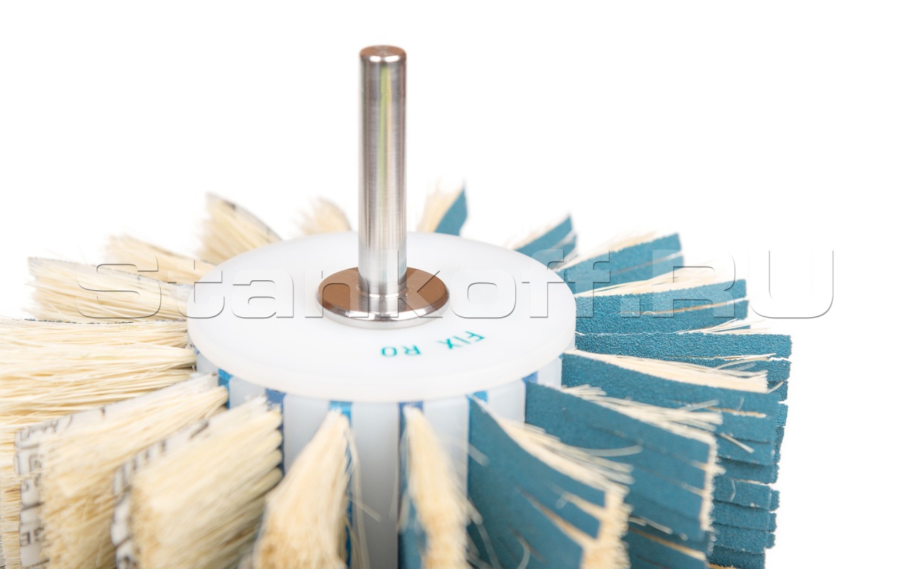 Радиальная переходная втулка на ручной электро-пневмо инструмент. Изготовлена из прочного и износостойкого пластика. Крепление изготавливается в любых вариациях - как с хвостовиком под зажимной патрон или цангу, так и с различной резьбой. Легкая конструкция не существенно утяжеляет ручной инструмент. В основном применяется при шлифовании МДФ со сложными фрезеровками или при легком браширование древесины, а также удаление ворса после брашировки. Для этих задач подбирается определенная высота щетки и параметры абразива (ширина лепестка, вид нарезки, зернистость).