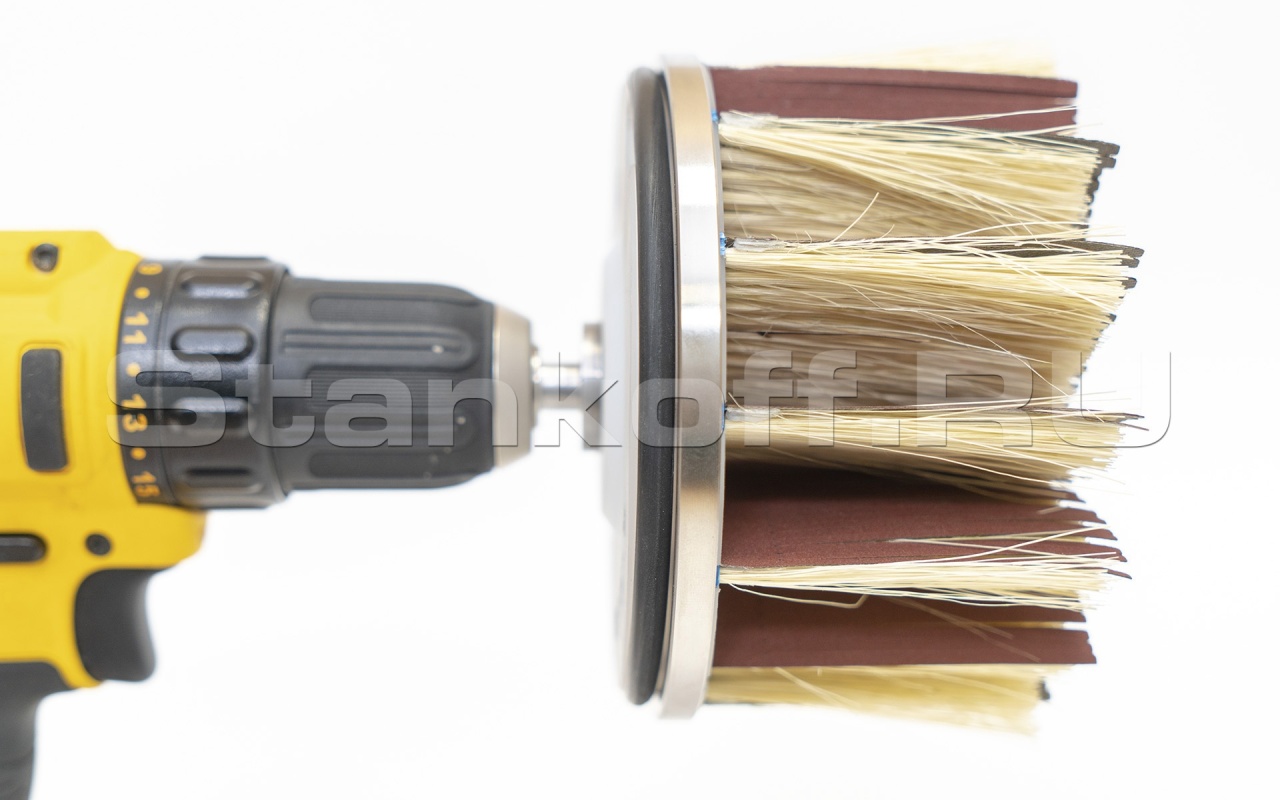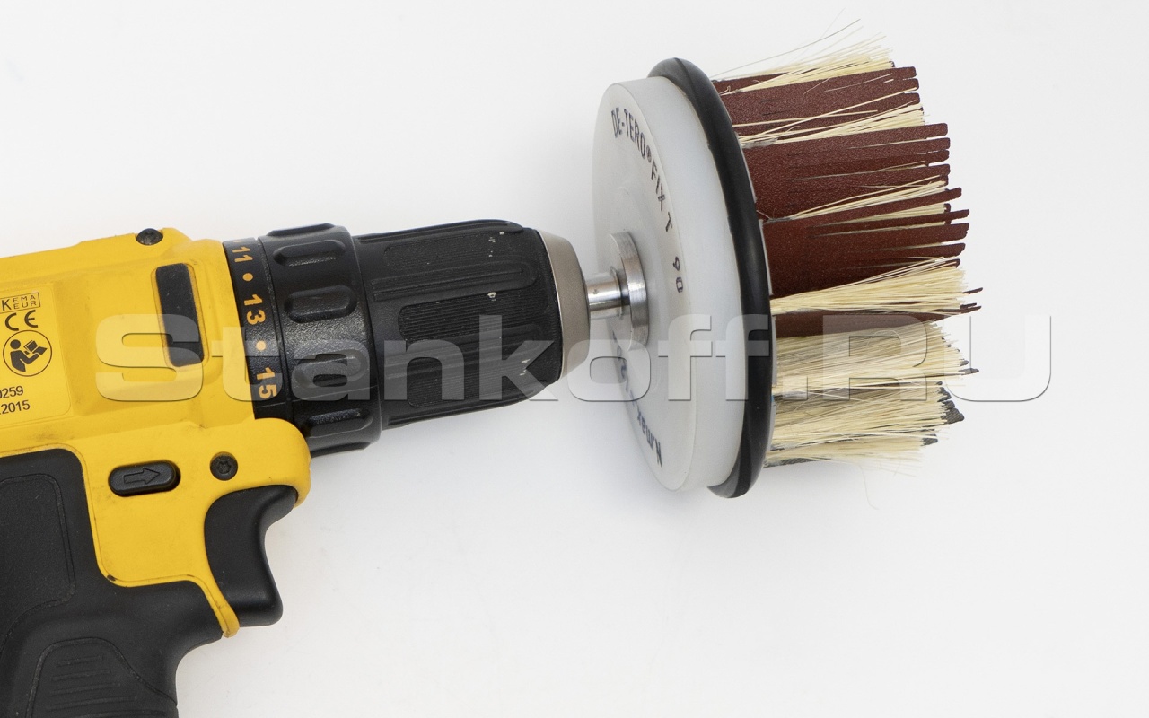 Изготовлена из прочного и износостойкого пластика. Прочная и надежная конструкция делает этот переходник практически вечным. Специально разработанная конструкция переходника позволяет производить смену шлифовальных щеток без демонтажа переходника с привода.
