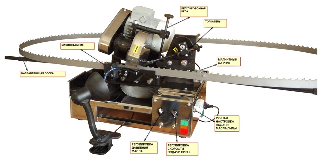 Хорошее заточное устройство минимизирует влияние человеческого фактора в таком «тонком» деле, как заточка ленточной пилы. Поэтому немаловажно, что работа на станке не требует специальной квалификации персонала. Точить пилы на этом станке может практически любой человек, прочитавший инструкцию.