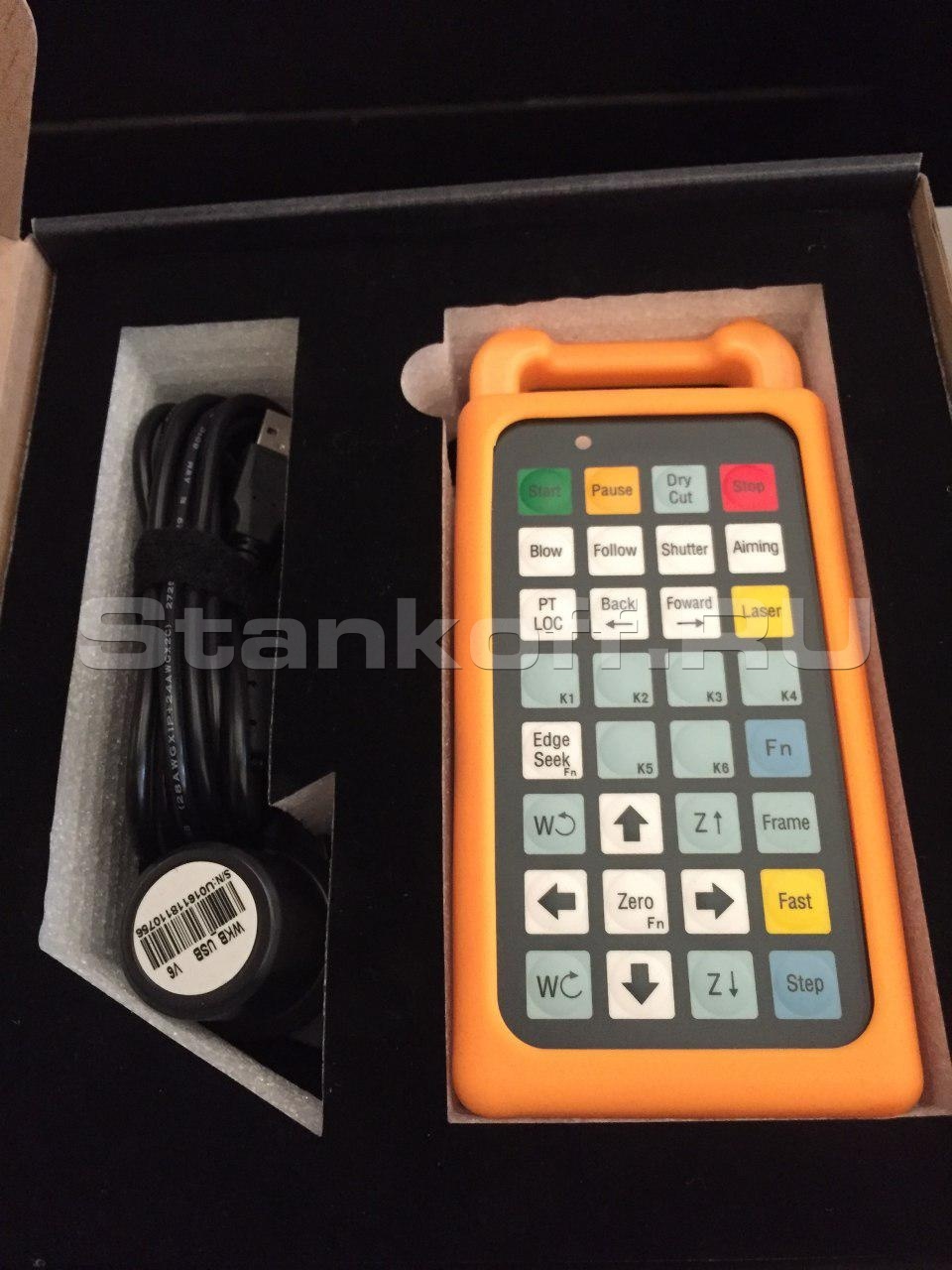 Позволяет оператору выполнять наиболее востребованные действия, не подходя к ЧПУ. Запуск/остановка программ, обратный ход, увеличение/уменьшение фокусного расстояния, изменение скорости подачи. Позволяет сократить время позиционирования режущей головы на 30%. Дает возможность контролировать раскрой и оперативно реагировать при необходимости.