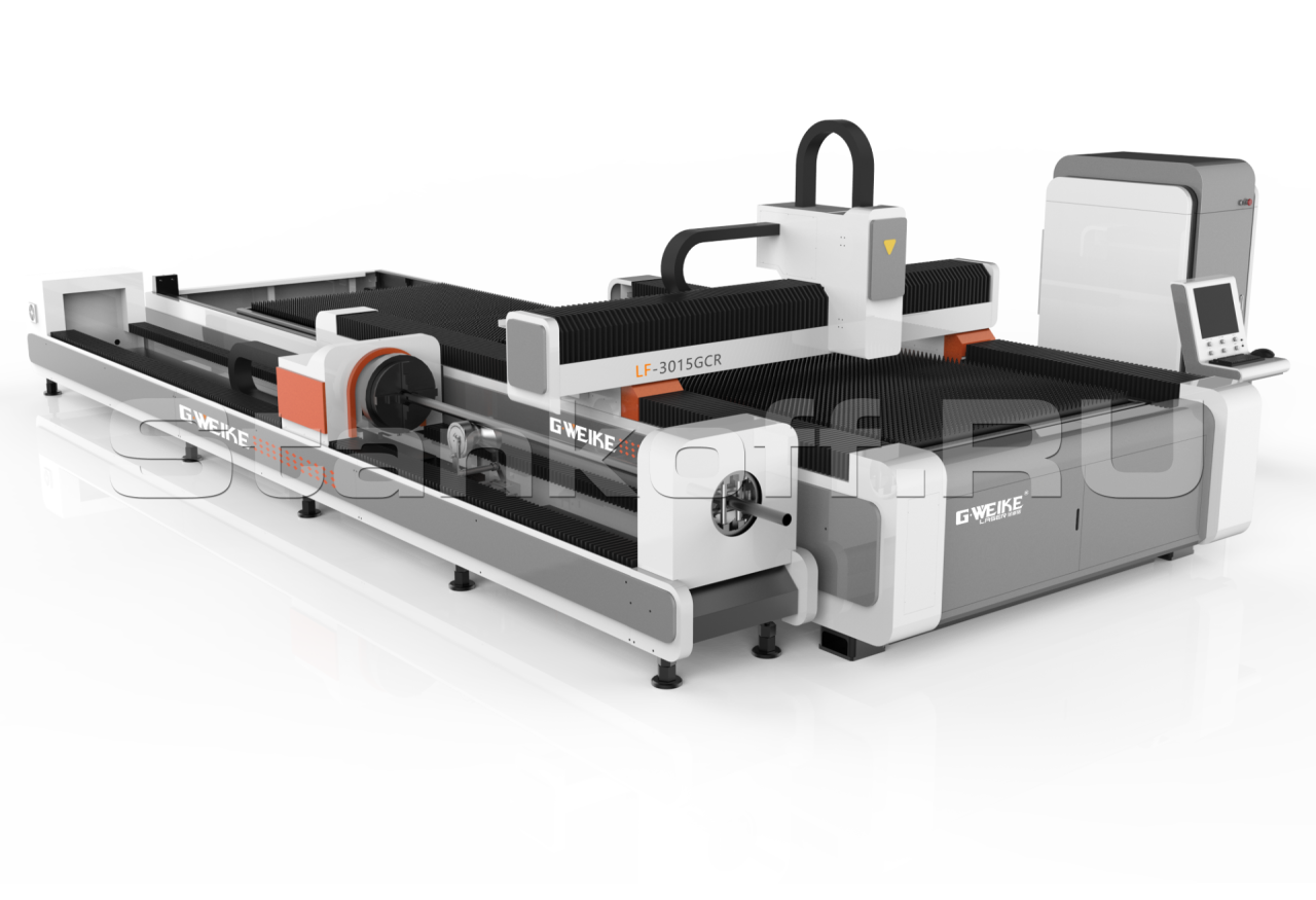 Оптоволоконный лазерный станок для резки листов и труб со сменным столом LF3015GCR/1500 Raycus