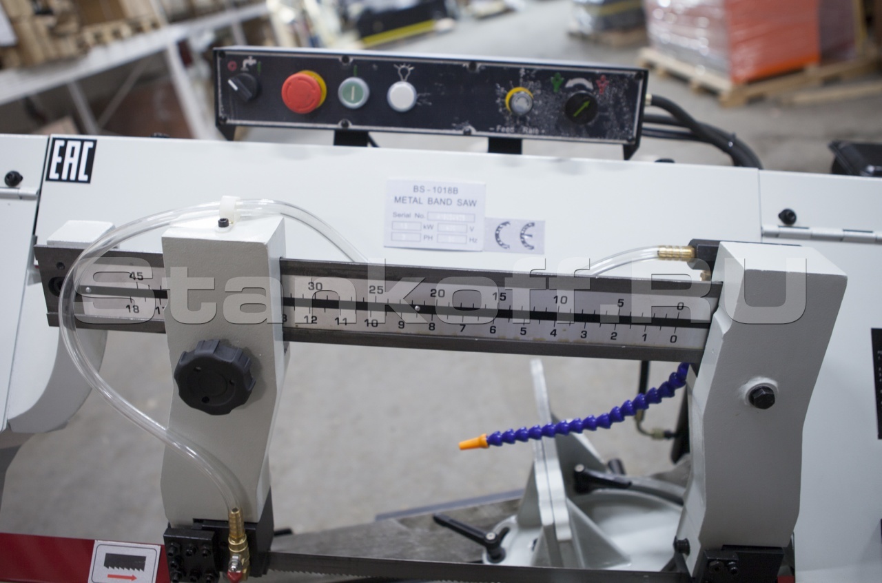 На станке с гидроразгрузкой, процесс резки (запуск пилы – опускание рамы – остановка пилы) происходит в автоматическом режиме благодаря гидравлической системе. Пила опускается под собственным весом, станок оборудован дросселируемым гидравлическим цилиндром, который позволяет автоматически подстраивать скорость опускания пильной рамы в зависимости от профиля заготовки, что обеспечивает оптимальные режимы распила, подъём рамы осуществляется оператором вручную. Станок BS-1018В разработан для резки черных металлов и других материалов с целиковым, полым или профильным сечением, конструкция позволяет делать макс. распилы полых заготовок (труб) диаметром до 254 мм.