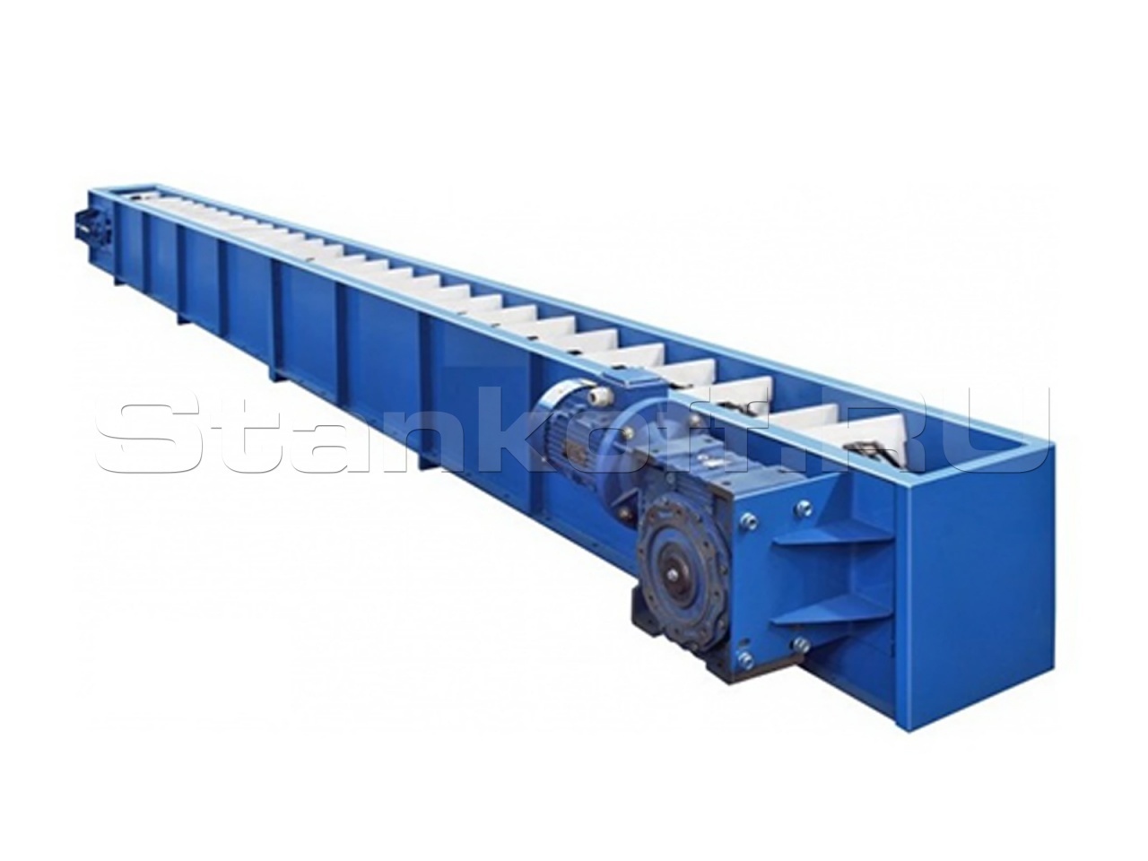 Конструкция транспортера представляет собой короб прямоугольного сечения, изготовленный из листовой стали. С одного конца транспортера расположена приводная станция, а с другого натяжная. Рабочим органом является цепь со скребками, натянутая между двумя звездочками.
