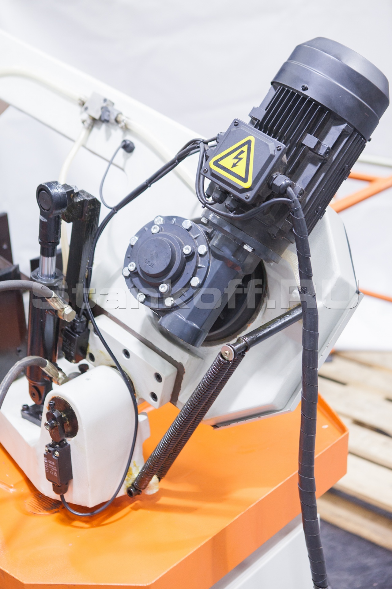 Используя данную модель, имеющую гидравлические регулируемые тиски для резки под углом, поворачивается рама, а не заготовка. Гидравлические тиски автоматизируют процесс фиксации и снятия заготовки (ускоренный отвод подвижной губки происходит без вращения маховика). Наличие система СОЖ в стандартной комплектации – позволяет добиться высокой производительности.