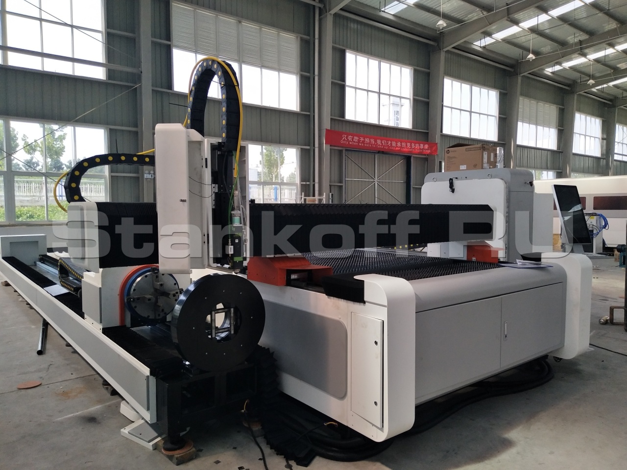 Оптоволоконный лазер для резки листов и труб со сменным столом LF3015GCR/2000 Raycus