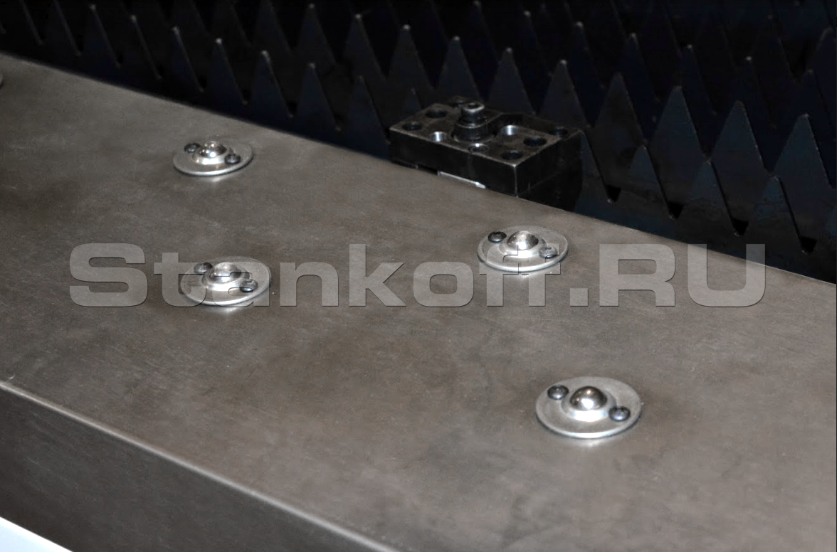 На рабочем столе расположено несколько шаровых опор для облегчения легкости подачи. Еще одним способом подачи является ролик. После подключения газа ролик поднимается выше стола резки таким образом, чтобы обеспечить оптимальную подачу. Одним из важнейших преимуществ данной системы подачи является предотвращение царапин материала. Сокращает время погрузочно-разгрузочных работ на 10%.