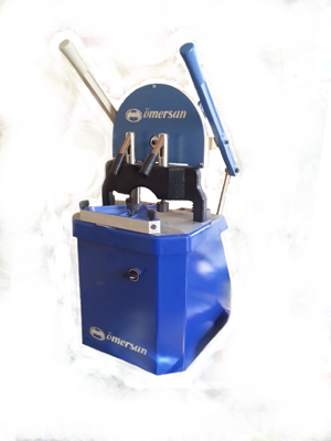 Высокопроизводительный механический станок, имеет 1 фрезер и 1 отрезной диск. Пилит под углом 45 и 90 градусов, присаживает 1 паз под крепежный винт на одной заготовке. Обрабатывает одну заготовку с одной стороны за один производственный цикл.