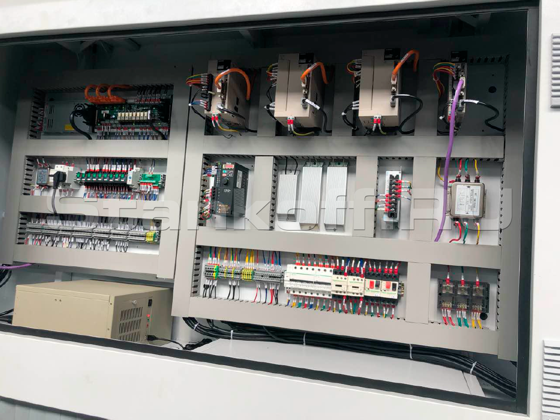 Все электрические компоненты от производителя SCHNEIDER ELECTRONIC интегрированны в стойку управления ЧПУ. Из предустановленного П.О. происходит управление лазерным комплексом, а также калибровка необходимых узлов перед запуском в работу оборудования.