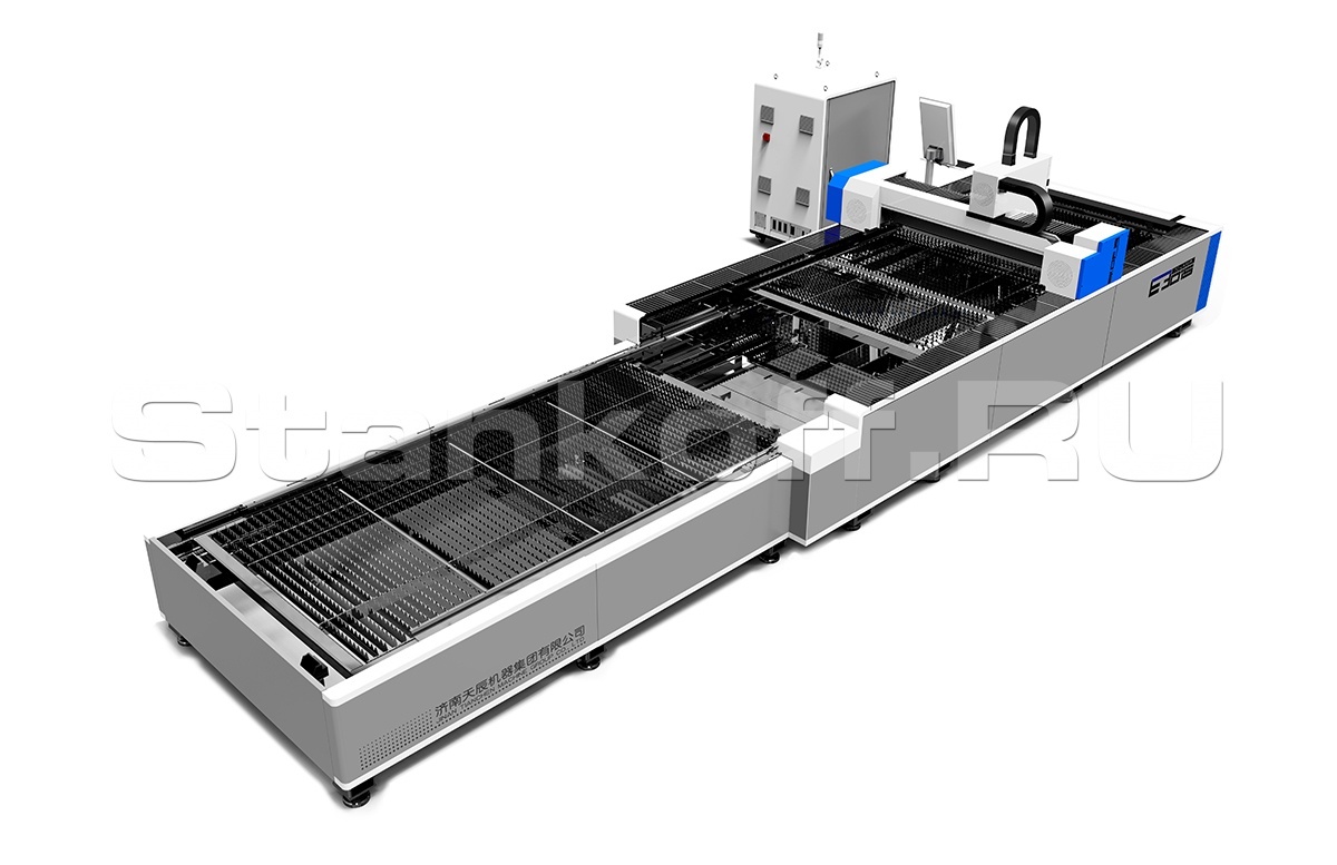 Оптоволоконная лазерная установка для резки металла со сменным столом TC-E3015/2000 Raycus