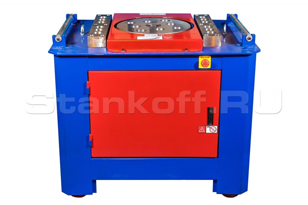 При гибке арматуры на станке GW50, оснащённым доводным механизмом, оператор имеет возможность дополнительной регулировки точного угла загиба прутка посредством перемещения конечных выключателей, расположенных вдоль ребра на планшайбе станка.| Скорость вращения рабочего диска, об/мин | 9 |