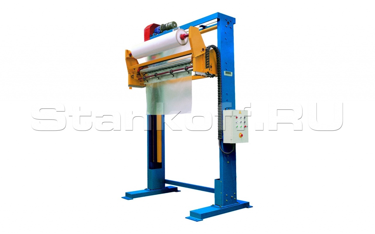 AT05 - автоматическое оборудование для укрытия паллет термоусадочной пленкой. Размотка пленка и обрезание пленки происходит в автоматическом режиме, без участия оператора. Длина пленки определяется автоматически.