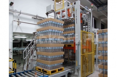 Автоматический депаллетайзер для бутылок и банок с верхней подачей продукции, работает по принципу сдвига слоя с перемещением паллета. Предназначен для линий высокой производительности. Надежная работа в долгосрочной перспективе. Не требует присутствие оператора. Производительность, 5 слоев в минуту. - Перемещение слоя может осуществляться надувными трубками, присоскам или магнитной головкой вместо толкателя. Выход бутылок/банок на линию при помощи выравнивающего многорядного конвейера или при помощи стола аккуратного перемещения ряда.