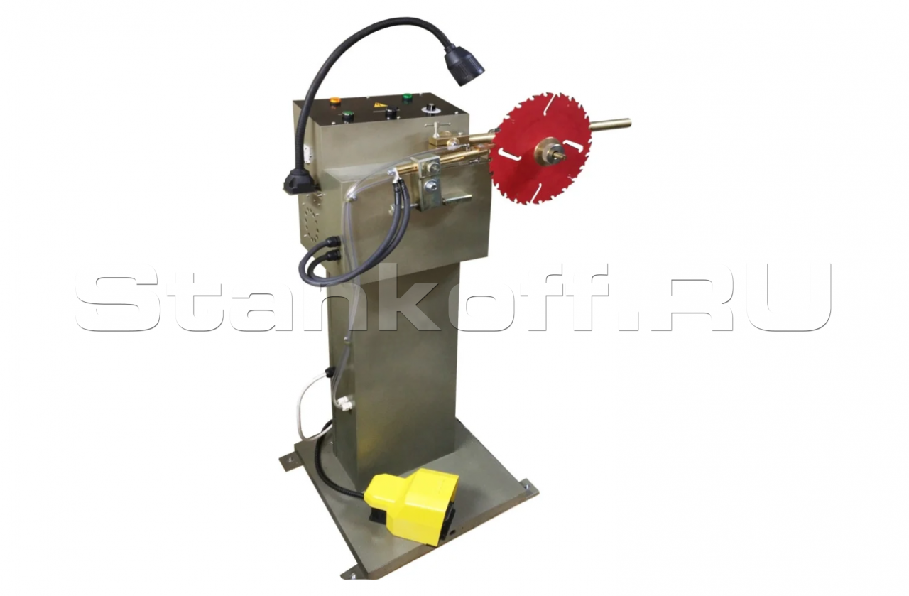 Предназначен для напайки твердосплавных пластин на пилы дисковые и удаления изношенных пластин. Нагрев – электрический. Мощный трансформатор 5 кВт. Система водяного охлаждения ложемента. Система воздушного охлаждения трансформатора.